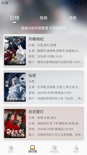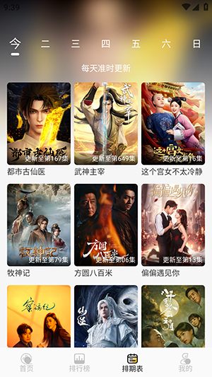 点击“排行榜”查看热门内容,或通过“排期表”了解当日更新;