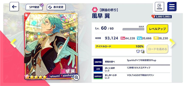 如下图,风早这张Da、Vo、Pf,分别是44228、20666、28230。