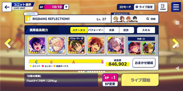 假设我要打「BIGBANG REFLECTION!!」的属性为「Flash (黄色)」,那原则上,我选择成员的条件就以「Flash属性」的卡为准。